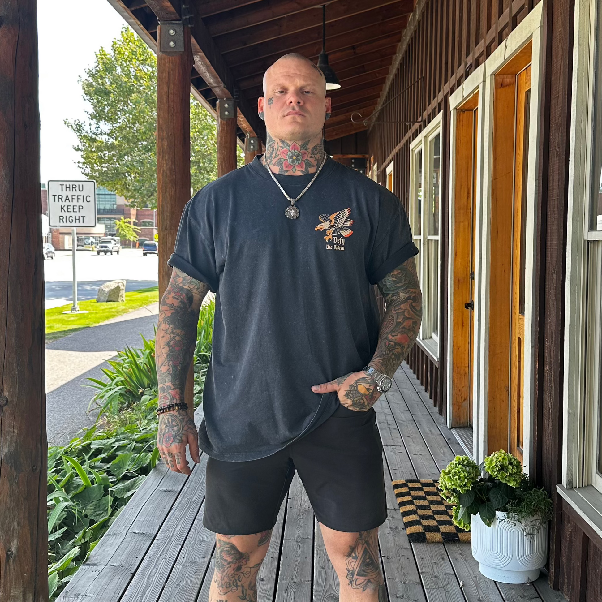 100% cotton with a stone wash finish and preshrunk. (**different style tee than most of our graphic tees)