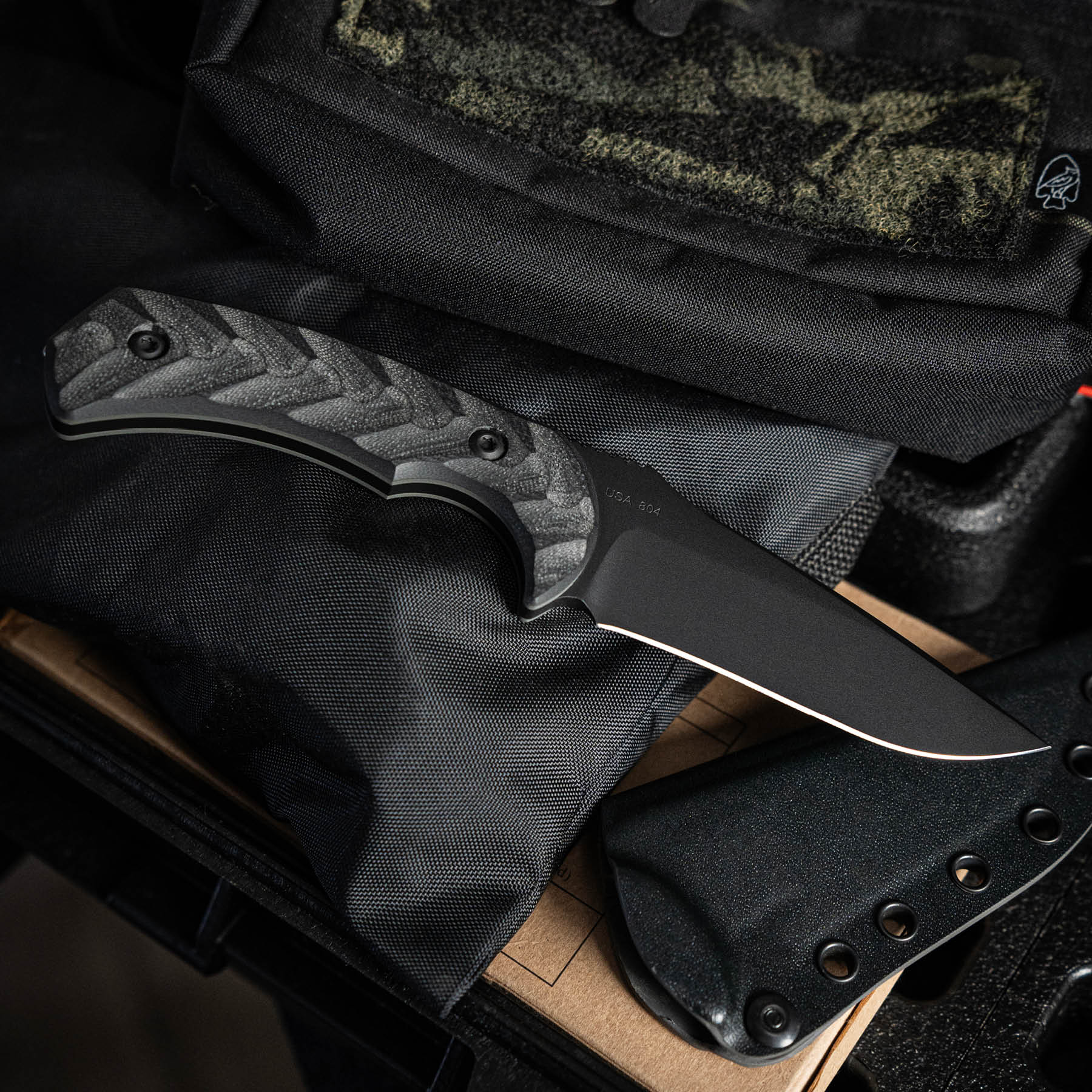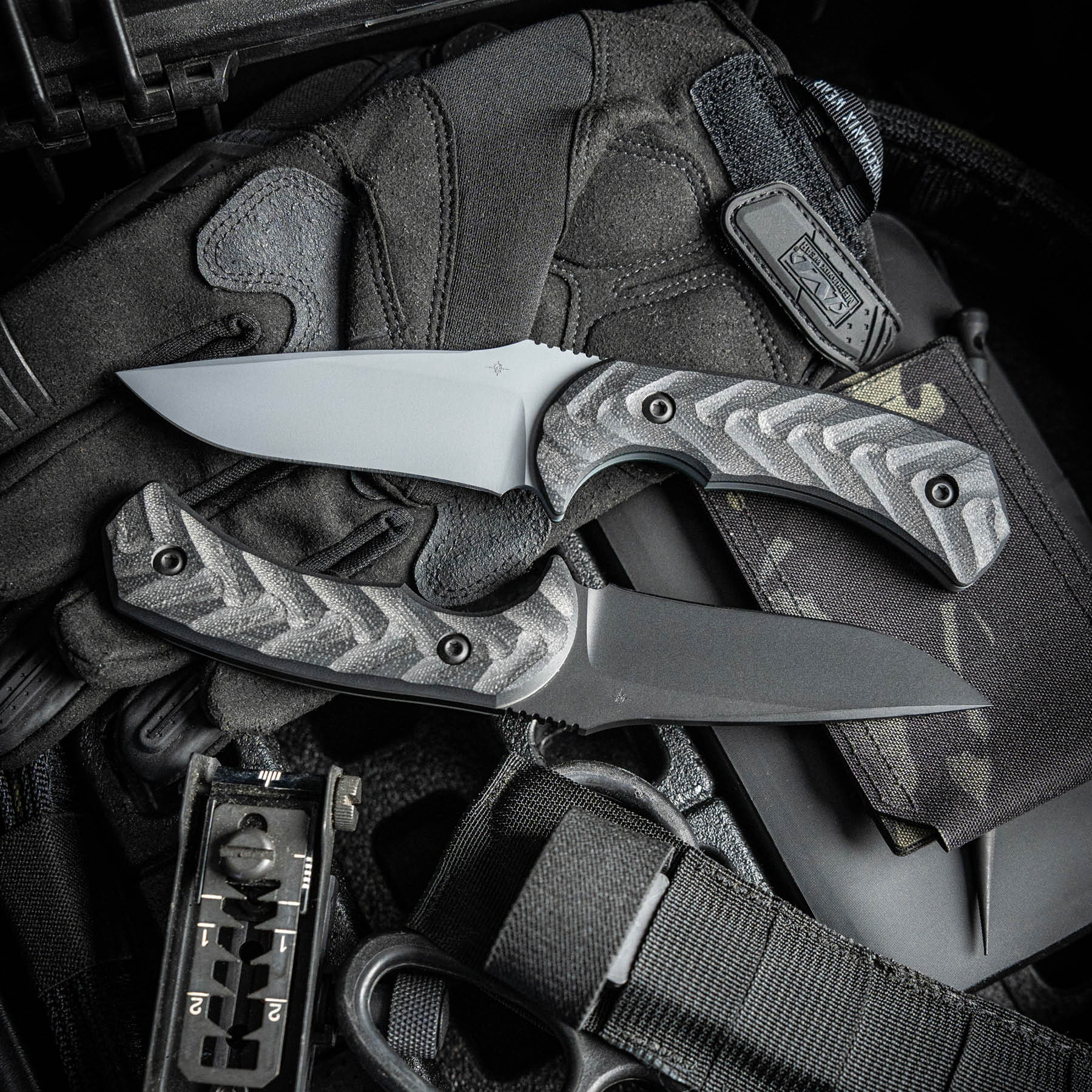 Crafted from CPM M4 steel, this blade features a short swerve grind that reinforces the tip and minimizes resistance when penetrating tough surfaces. With an overall length of 8.5”, a weight of 7.5 oz., and a blade thickness of 0.1875”, the Mullet S fills the gap in our lineup as a midsized fixed blade, slightly larger and heavier than our Krypteia. The Mullet S is now available in Phantom Grey and SOCOM Black finishes and is fitted with G10 handles, featuring Toor Knives’ signature texture, providing an extremely comfortable in-hand grip.