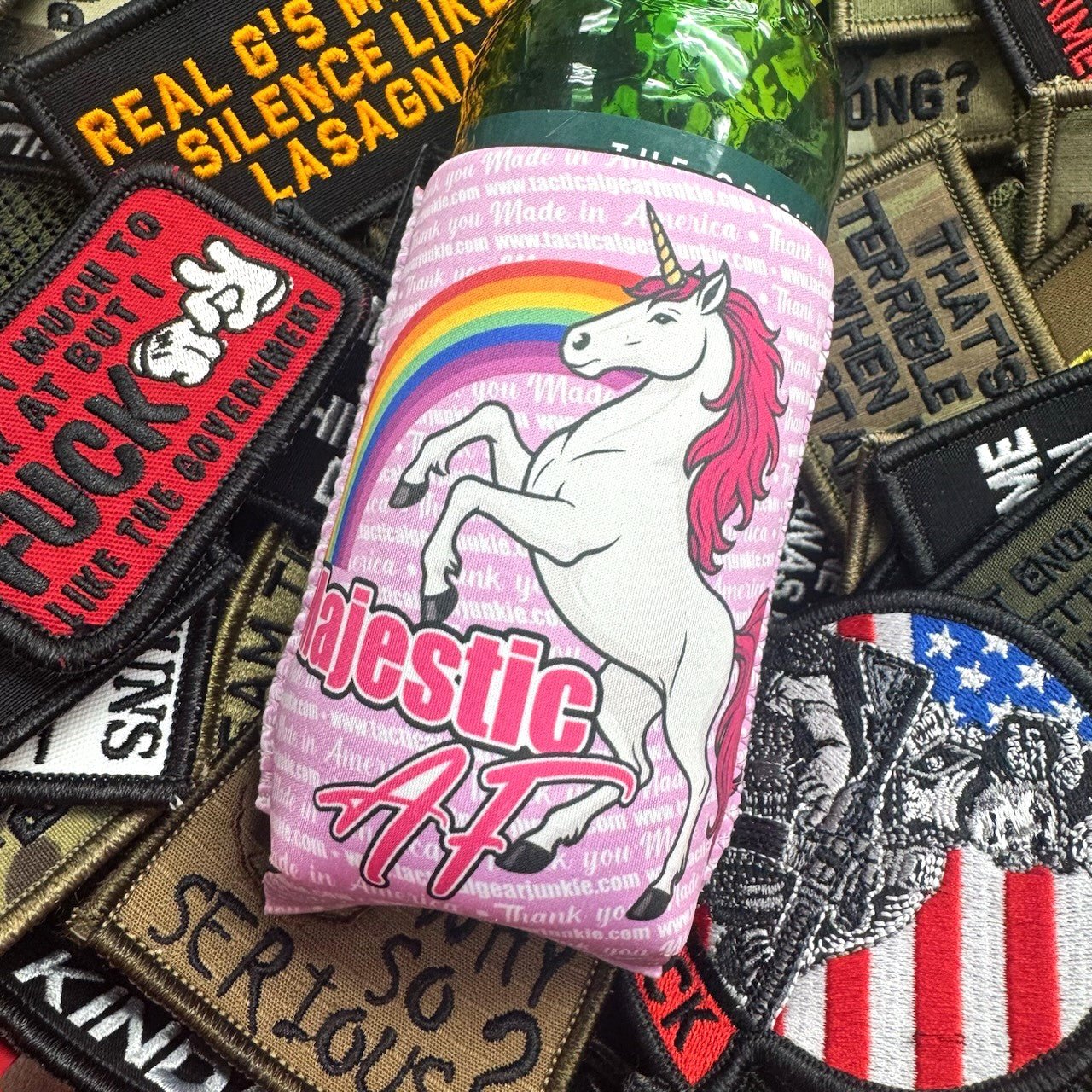 Some of our most popular patch designs, have now been turned into tacticoolers. Neoprene tacticoolers are insulated sleeves made from a soft, flexible synthetic rubber material designed to keep beverages cold and hands dry. Pick yours up today to make your beverage extra flashy.